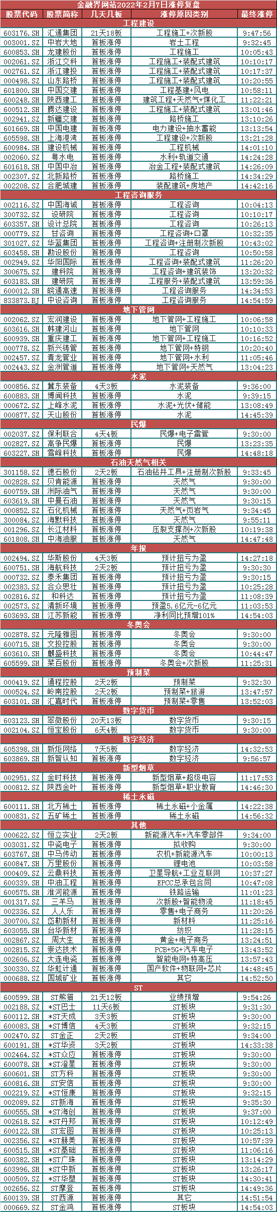 盘面上,稳增长行情继续演绎,工程建设、工程咨询服务、地下管网等板块纷纷爆发,建科院、华蓝集团、设研院20CM涨停,中国交建、中国电建、中国中冶等中字头大军涨停,此外水泥、民爆、钢铁、煤炭等板块亦有出色表现;油价大涨,油气设服、采掘、天然气等板块集体走高,海默科技、石化机械、中曼石油、中油工程等多股封板,中石油大涨9.16%;年报预告行情依旧抢眼,扭亏为盈的企业大受关注,另外节前部分企业预告了“业绩雷”,股价纷纷跌停;冬奥会局部活跃,元隆雅图等凭借冰墩墩出圈,缩量一字涨停;锂电、稀土、汽车整车板块冲高回落;宁德时代高开低走跌超2%。