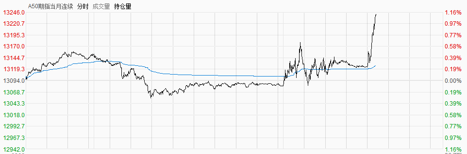 富时中国A50指数期货拉升涨超1%,A股三大指数全线飘红
