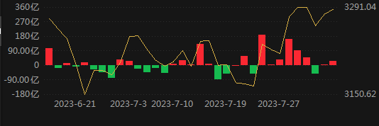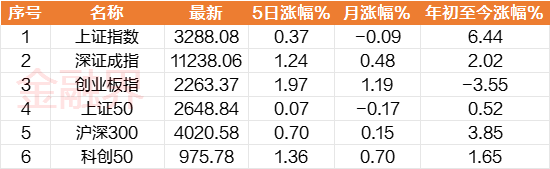 周一是7月最后一个交易日,当天大盘冲高回落,盘中创下5月12日以来新高,周二、周三大盘震荡调整,周四、周五再度上行,目前A股三大指数均已连续2周上涨。本周,沪指累计小幅上涨0.37%,深成指涨1.24%,创业板指涨1.97%,上证50指数微涨0.07%,沪深300指数涨0.7%,科创50指数则上涨1.36%。
