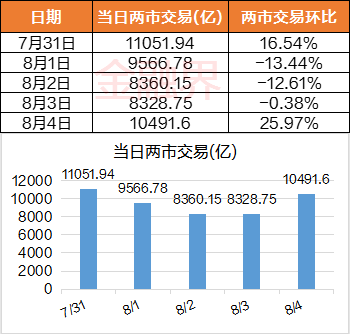 周一两市成交额时隔近一个月重返1万亿元规模,但随后的3个交易日里量能持续萎缩,在周五才有所反弹,再度收获万亿成交。本周A股两市日均成交额约9559.84亿元,前一周该数据报8255.06亿元。