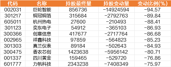 同期,北向资金大比例减仓个股名单中,巨轮智能变动比例最高, 铜冠铜箔、杭州热电、奕东电子、产业信息、祥鑫科技、真兰仪表等变动比靠前。