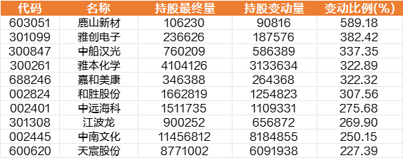 如果从同期持股比例变动量来看,游族网络、蒙娜丽莎、共创草坪、康缘药业、华菱钢铁等获大比例增持,利达光电、国联证券、震安科技、鼎通科技、起帆电缆、浙江世宝等遭大比例减持。