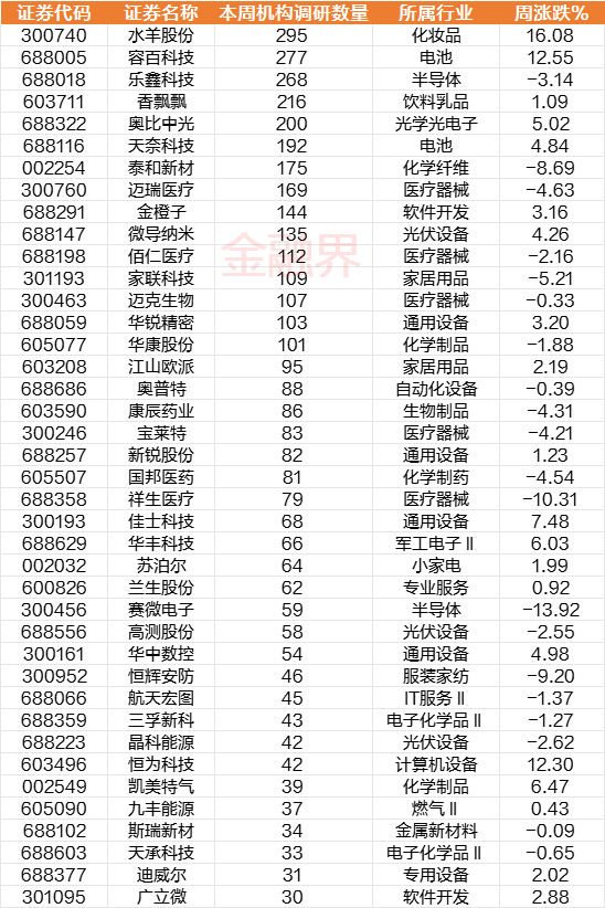 本周获得超过30家机构调研的上市公司