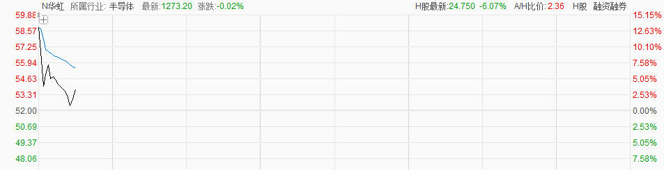 华虹公司于2014年10月于香港联交所主板挂牌上市,股票代码“1347.HK”(华虹半导体),目前该只港股跌超6%。
