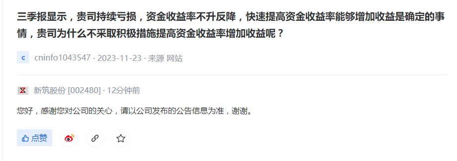 12月2日消息,新筑股份在互动平台表示,"请以公司发布的公告信息为准"。