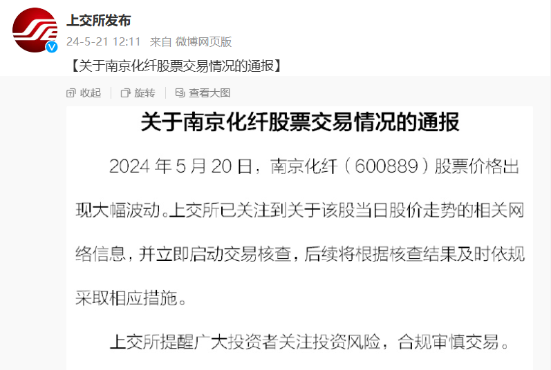 监管关注!南京化纤昨日“天地板”,有网民提前40多分钟“剧透”,上交所:立即启动交易核查