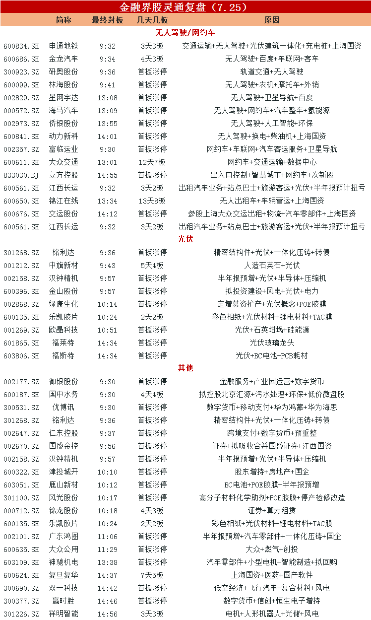 涨停复盘:无人驾驶概念强者恒强 光伏板块崛起