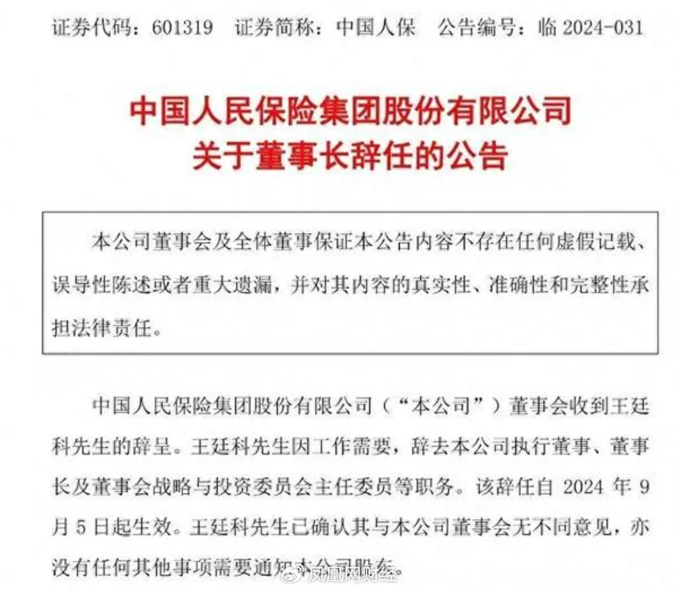 9月6日,随A股总市值超4000亿元的中国人保公告王廷科辞去公司执行董事、董事长及董事会战略与投资委员会主任委员等职务,上市公司高管们的离职潮开始引起市场关注。