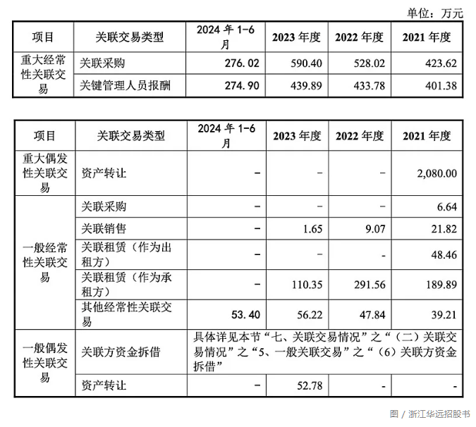 2021年,浙江华远还曾发生重大偶发性关联交易,涉及金额2080万元,关联交易类型是资产转让。报告期内,该公司也存在其他经常性关联交易。