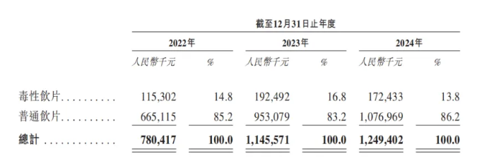 2022年、2023年及2024年(报告期),普通饮片的收入占比分别为85.2%、83.2%、86.2%,主要包括川贝母、麦冬、炒酸枣仁、当归和黄连;毒性饮片的收入占比分别为14.8%、16.8%、13.8%,主要包括法半夏和姜半夏。