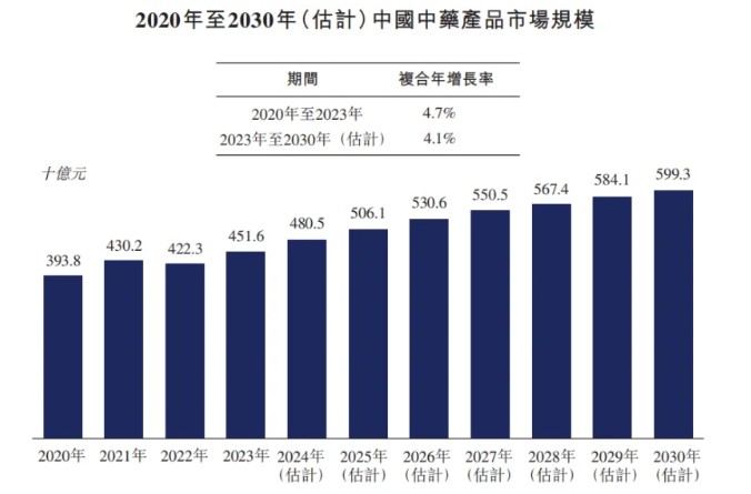 2020年至2030年(估计)中国中药产品市场规模,来源:招股书