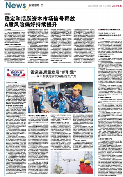 上海证券报:稳定和活跃资本市场信号释放 A股风险偏好持续提升