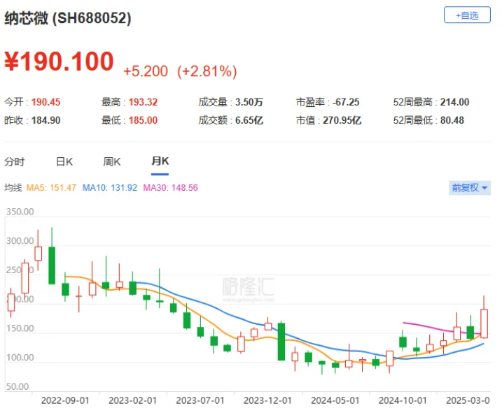 截至4月28日收盘,纳芯微A股股价为190.1元/股,市值为270.9亿元。