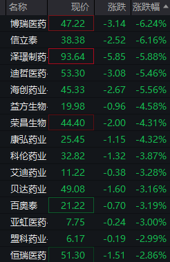 早盘创新药概念集体回调,迈威生物跌超10%,百济神州、信立泰双双一度跌超8%,益方生物、舒泰神、热景生物、百利天恒、诺诚健华等跌幅靠前。消息面上,特朗普将签署行政令,药价将立即降低30%-80%。