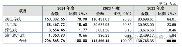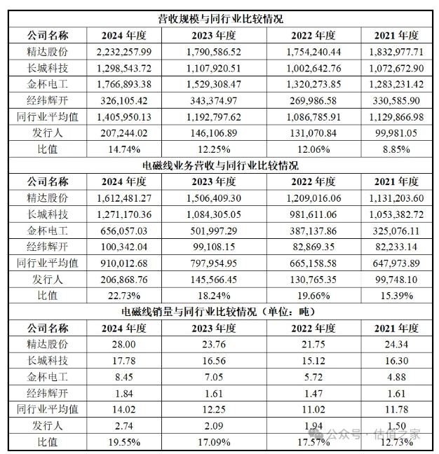 如果说在特高压领域发行人还能倔强地认为自己处于行业领先地位,但如果我们将跳脱发行人限定的比较范围,将考察视野转向至整个电磁线领域,很容易地发现发行人此种避重就轻的论述手法很容易被拆穿,具体情况见下表: