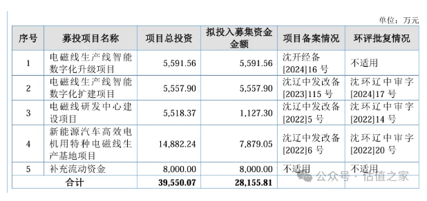 据申请材料显示,发行人此次IPO计划共募集资金28,155.81万元,分别用于电磁线生产线智能数字化升级项目、电磁线生产线智能数字化扩建项目、电磁线研发中心建设项目、新能源汽车高效电机用特种电磁线生产基地项目、补充流动资金5大项目。而在这5大项目中,至少有3大项目的募集资金使用合理性有待商榷。