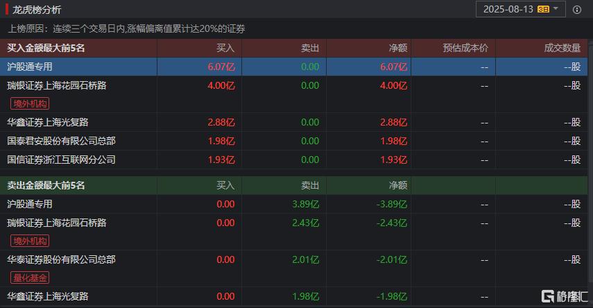 资金方面,游资接力炒作特征显著。龙虎榜数据显示,昨日主力资金净买入4.71亿元,其中沪股通席位买入超6亿元。