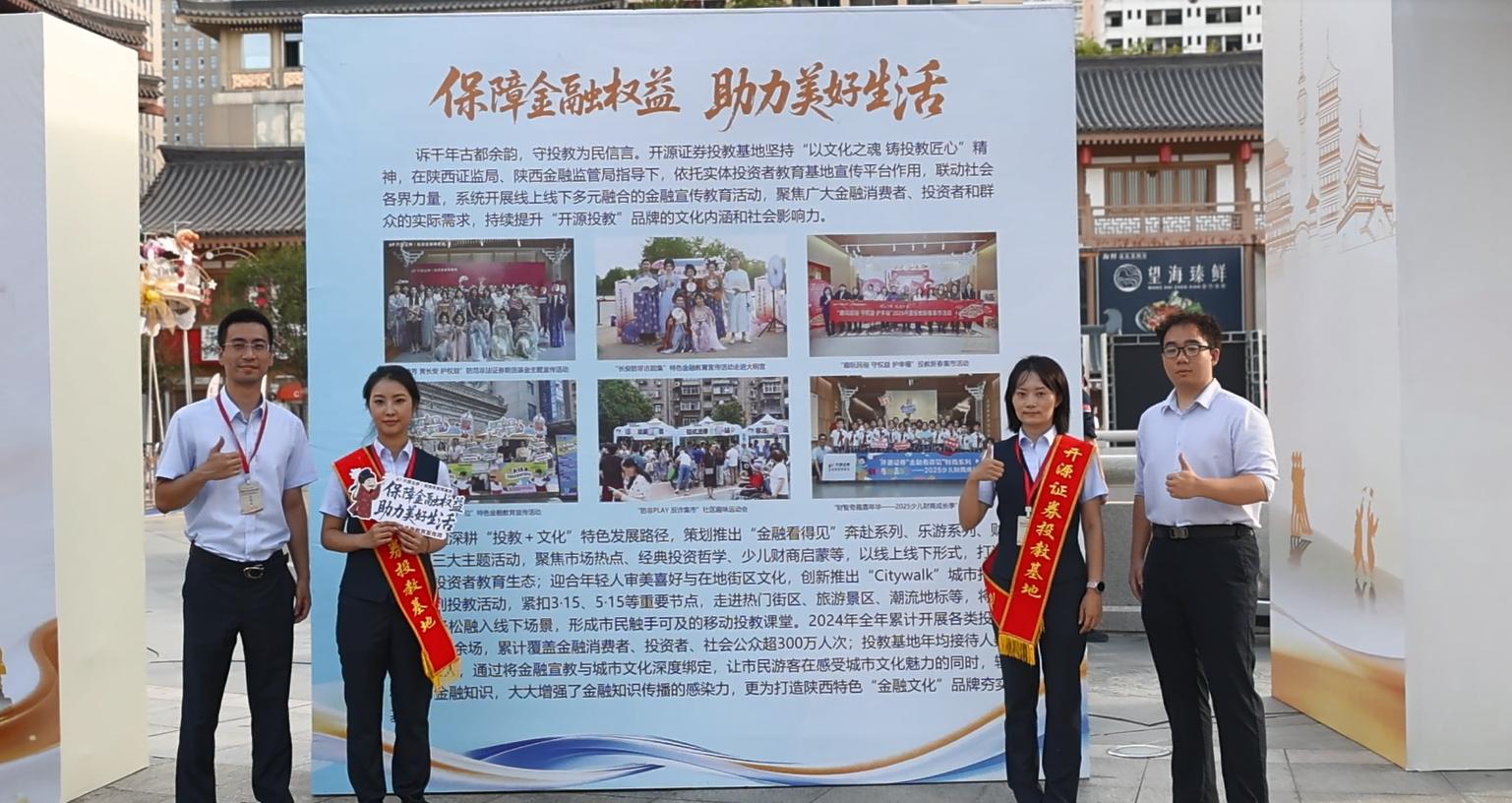 大唐西市广场人潮涌动,气氛热烈。开源证券紧扣“五彩三秦·金融消保”品牌理念,以“文化赋能投教、金融服务民生”为切入点,打造了极具陕西地域文化特色的宣传展位与主题展板,实现了文化基因与投资者教育实践的深度融合。