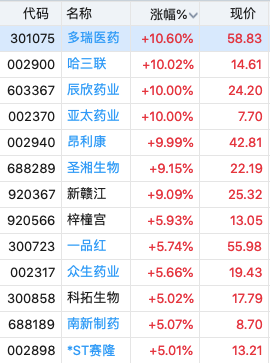 10月22日,A股创新药板块大爆发,截至发稿,多瑞医药、哈三联、辰欣药业、亚太药业、昂立康等公司10CM涨停,圣湘生物、新赣江等涨超9%。