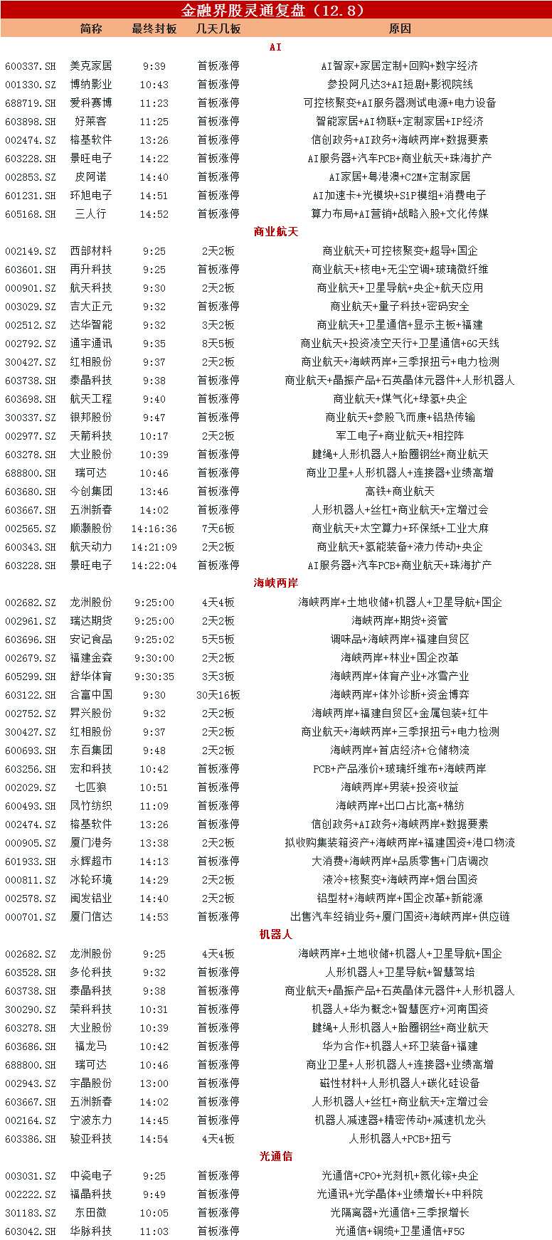 涨停复盘:商业航天、海峡两岸概念延续强势