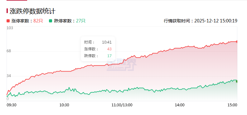 12月12日,A股三大股指早盘小幅下跌后震荡反弹,午后高位窄幅震荡,截止收盘,沪指涨0.41%报3889.35点,深成指涨0.84%报13258.33点,创业板指涨0.97%报3194.36点,科创50指数涨1.74%报1348.88点,沪深两市成交额2.09万亿,全市场涨跌家数接近持平。