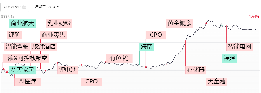12月17日,A股三大股指小幅高开走窄幅震荡,午后强力拉升,截止收盘,沪指涨1.19%报3870.28点,深成指涨2.4%报13224.51点,创业板指涨3.39%报3175.91点,科创50指数涨2.47%报1325.33点。全市场成交额1.83万亿元,超3600股上涨。