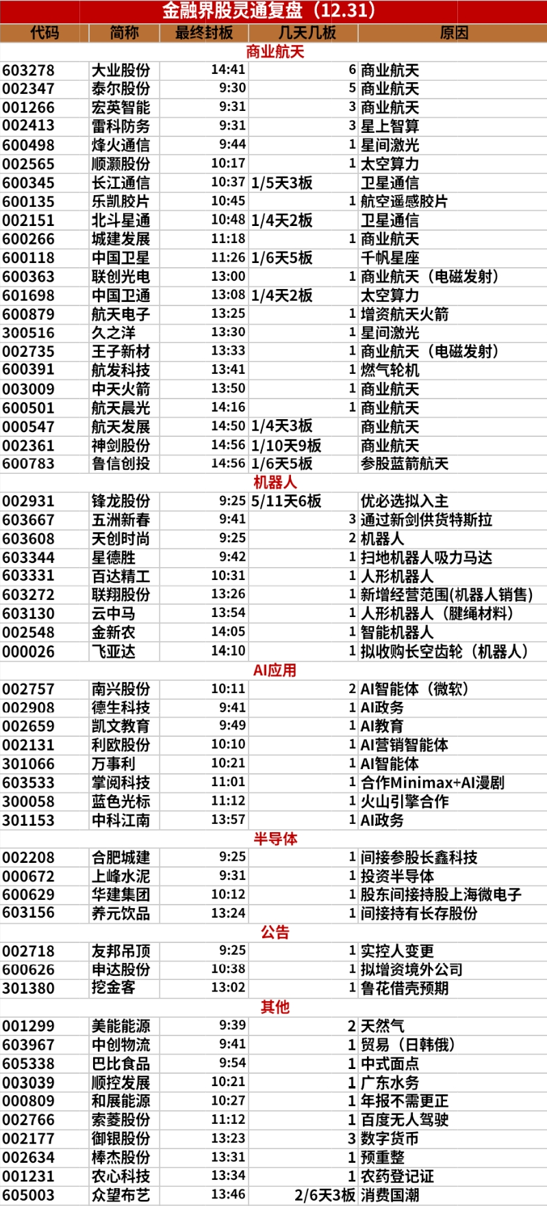 涨停复盘:今日全市场共57股涨停,连板股总数13只,商业航天重拾升势,大业股份上演“准天地天”行情走出6连板