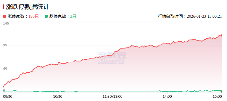 1月23日,指数尾盘震荡拉升,深成指探底回升,创业板指、深成指均涨超0.5%,北证50指数大涨超3%。沪深两市成交额3.09万亿,较上一个交易日放量3935亿。盘面上,市场热点快速轮动,全市场超3900只个股上涨,120只股票涨停。从板块来看,光伏概念爆发,隆基绿能、钧达股份、协鑫集成、明阳智能、拓日新能等30余股涨停。商业航天概念反复活跃,十余只成分股涨停,金风科技、润贝航科、西部材料涨停。AI应用概念走高,浙文互联4天2板。贵金属概念延续强势,白银有色4连板,中国黄金、豫光金铅涨停。医药商业概念表现活跃,益丰药房涨停。下跌方面,保险、银行板块跌幅居前。截至收盘,沪指涨0.33%,深成指涨0.79%,创业板指涨0.63%。