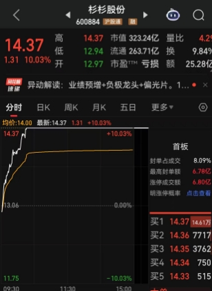 此番安徽国资出手,距离方大炭素终止参与杉杉集团重整仅仅过了一个月的时间。值得注意的是,周五杉杉股份股价提前大幅异动,股价牢牢封住涨停板,截至收盘杉杉股份报14.37元/股,大涨10%,当天涌入25.28亿元资金疯狂抢筹。