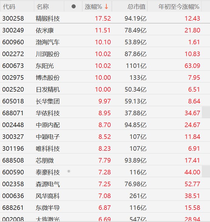 格隆汇2月12日|A股市场机器人(核心股)概念股走强,其中,精锻科技涨超17%,依米康涨超11%,渤海汽车、川润股份、东阳光、博杰股份、日发精机、长华集团10CM涨停,华依科技、中原内配、中颖电子、唯科科技涨超8%,芯朋微、泰豪科技、森源电气、风华高科涨超7%。