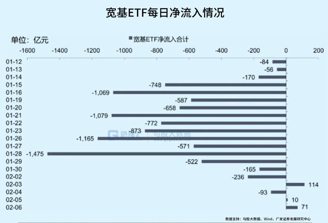 1.15-1.29日期间,宽基ETF经历了连续两周的大幅流出,但从1.30日开始可以明显看出,这种流出基本结束,甚至在一些交易日转为净流入。