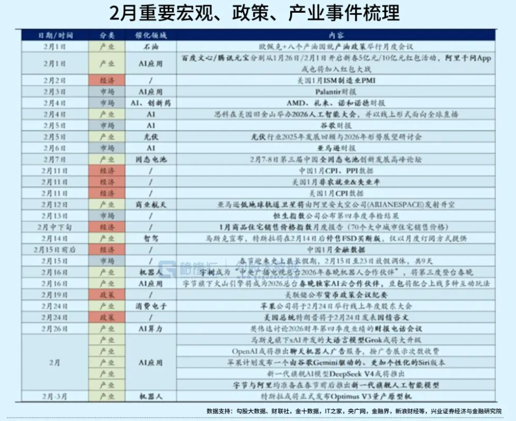 因此,随着宏观层面的边际影响逐渐消化,全球叙事变化对市场情绪冲击最大的时刻或正在逐步过去,而后续事件催化增多、“春节效应”等因素有望为市场修复创造良好环境。