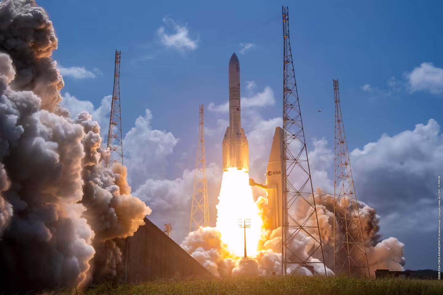 阿丽亚娜 6 号是欧洲目前最强大的火箭,而本次执行任务的 Ariane 64 型配备了四枚 P120C 固体火箭助推器,相比较自 2024 年 7 月使用双助推器阿丽亚娜 62 型,有效载荷能力翻了一番,达到约 21.6 吨。