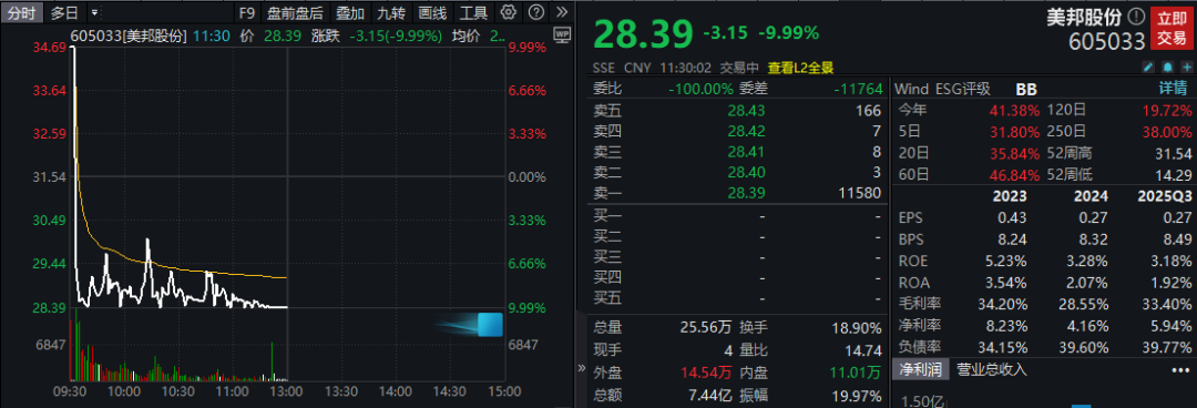 2月25日,此前拿下“四连板”的美邦股份(605033)股价盘中上演“过山车”走势。早间,该股以涨停价开盘,但在涨停板停留不足3分钟便直线跳水,上演“天地板”行情。