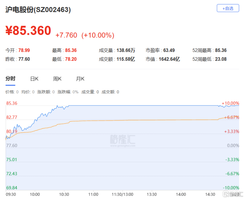龙虎榜中涉及机构专用席位的个股中,单日净买入额前三为沪电股份、春晖智控、高澜股份,分别为3.84亿元、1.63亿元、1.14亿元。