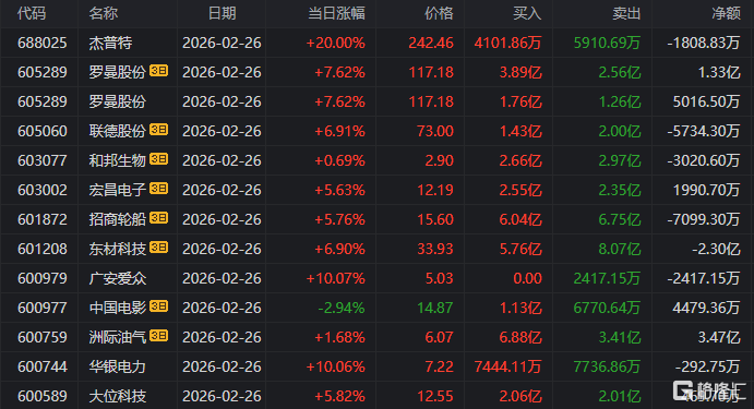 龙虎榜 | 大族激光狂飙涨停,机构砸盘超3亿元!欢乐海岸现身雅化集团