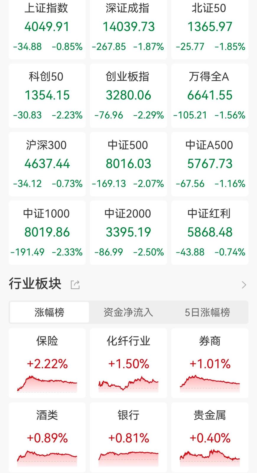 A股收评:高开低走!创业板指跌逾2%、全市场超4500股下跌,CPO、光通信板块重挫