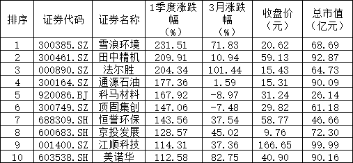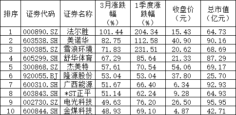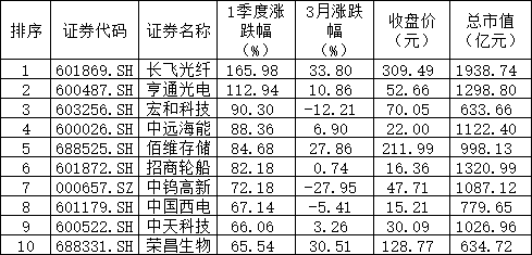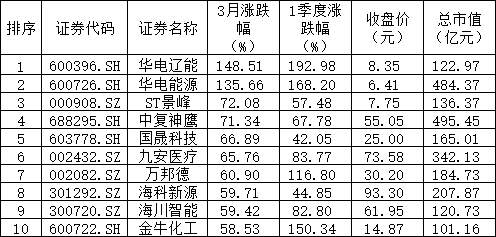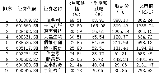 3月、一季度A股涨跌幅龙虎榜出炉。