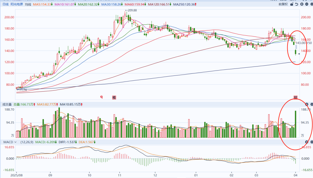 3000亿(昨日市值)光伏储能巨头,阳光电源今日股价大跌10.82%,本周大跌17.69%,自去年11月高位以来回撤35%。这是怎么了?