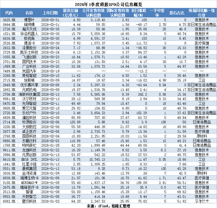 接下来让我们一起来看看一季度港股IPO的具体情况。