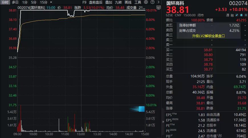 今日,动力电池板块迎来大涨。板块内,力佳科技涨超28%,圣阳股份、国轩高科、石大胜华等多股迎来涨停。其中,国轩高科开盘后仅用时6分钟就触及涨停,最高封单额高达24亿元。