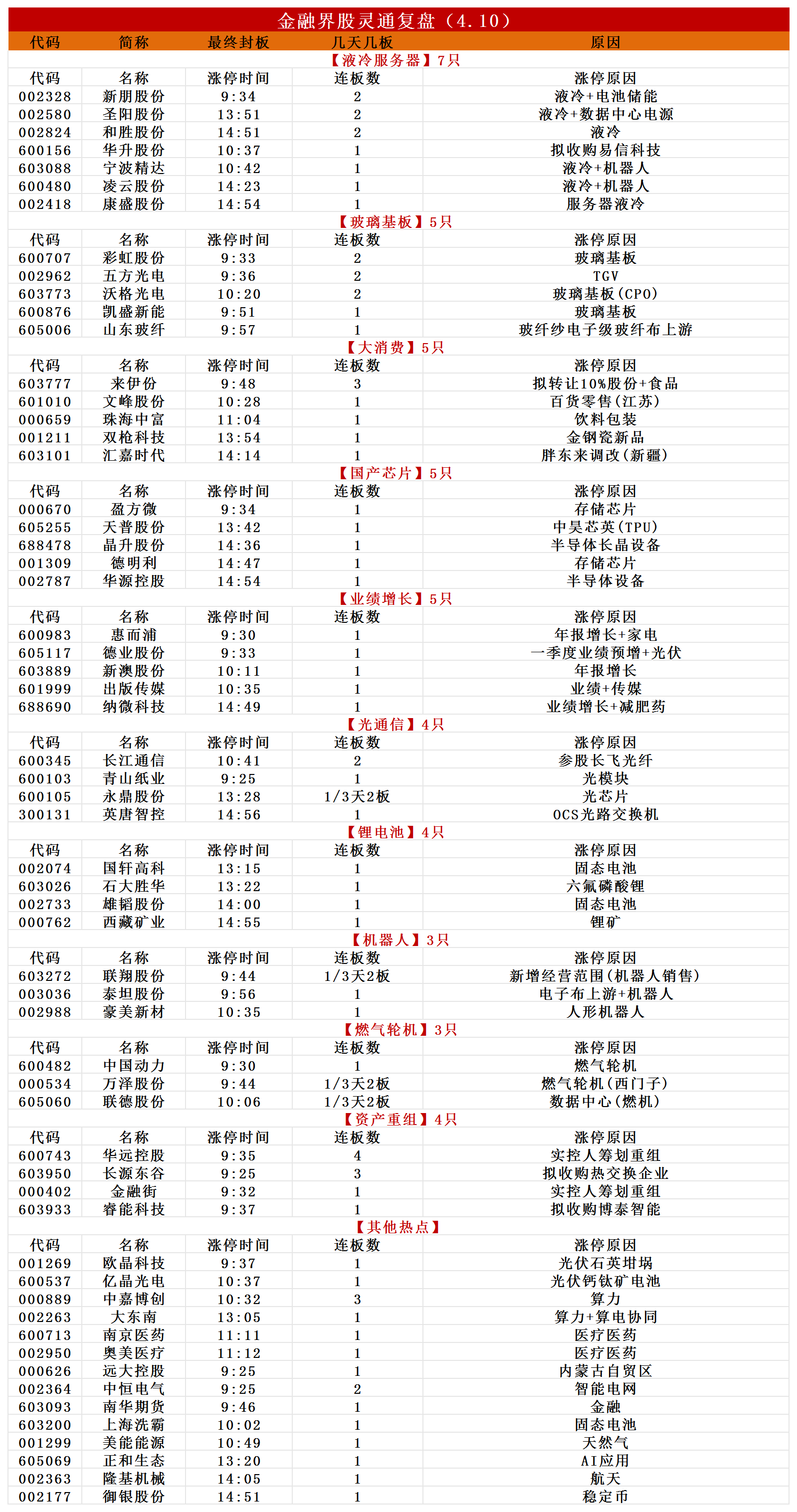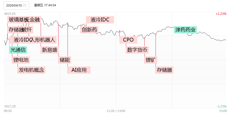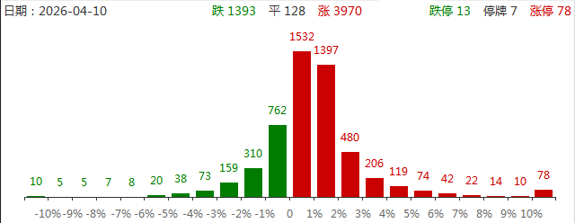 4月10日,行情完全由创业板大盘权重股主导,中际旭创、新易盛均涨超6%创历史新高,宁德时代一度涨超7%。但短线情绪不高,汇源通信、法尔胜、舒华体育、新能泰山等一批高位人气股跌停。截至收盘,沪指涨0.51%,深成指涨2.24%,创业板指涨3.78%。板块方面,行情紧紧围绕行业景气度展开,算力产业链与储能锂电产业链齐飞。储能锂电产业链方向,一季度业绩大增的德业股份开盘秒板,中恒电气、新朋股份、圣阳股份、和胜股份晋级2连板,石大胜华、西藏矿业、国轩高科涨停;算力产业链方向,光模块分支东山精密盘中一度涨停走出3连板,玻璃基板概念获短线资金追捧,彩虹股份、五方光电、沃格光电2连板,存储芯片获资金回流,德明利涨停,市值突破千亿。